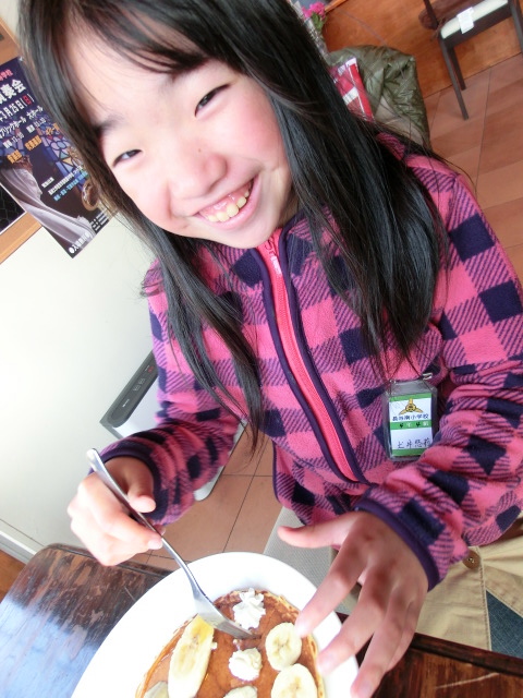 先日のレッスンは教室を離れてキッチンへ。お母さんが毎日ベイキングをしていたというDawson先生の指導のもと楽しいパンケーキ作り。
