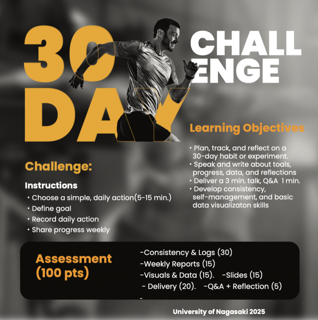 30日間、自分で決めた目標に向き合い、その結果と気づきを発表する時間。